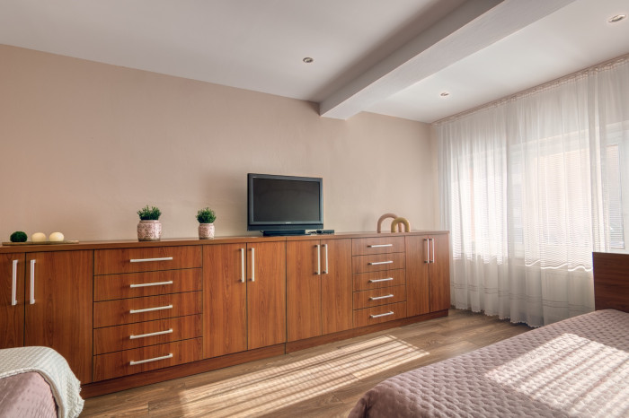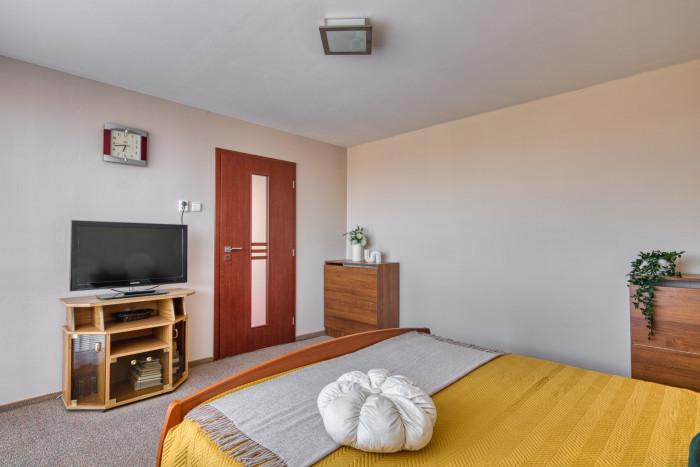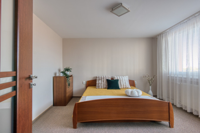 Spálňa s vlastným šatníkom a vstupom na balkón orientovaným do záhrady vytvára ideálne miesto na oddych. Ďalšie izby disponujú vstavanými skriňami a dostatkom priestoru pre deti či pracovňu. Na poschodí je aj veľká kúpeľňa s vaňou, bidetom a WC.