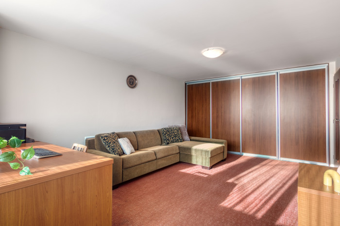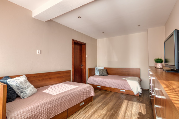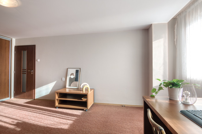 Poschodie ponúka tri samostatné priestranné nepriechodné izby s veľkými oknami a množstvom svetla.